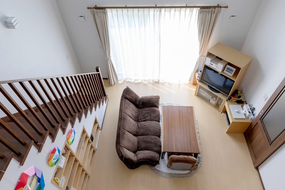 家族それぞれの個室と、吹き抜けのリビングがあることで、一人で寛いだり、集中した作業ができる空間と、家族が一緒に過ごす空間の両方ができ、ちょうど良い距離感とコミュニケーションが生まれています。