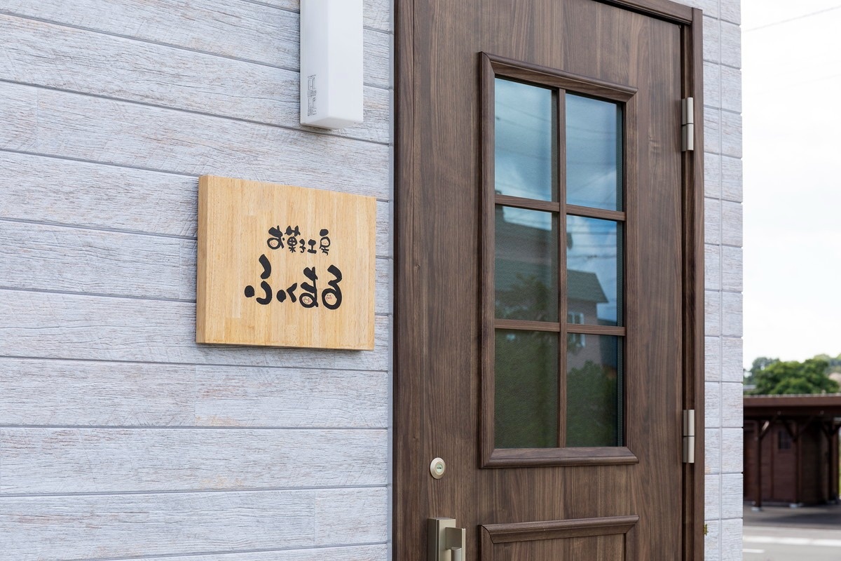 お店の名前は「お菓子工房 ふくまる」。店舗は幹線道路に面しており、広い駐車スペースも完備しています。