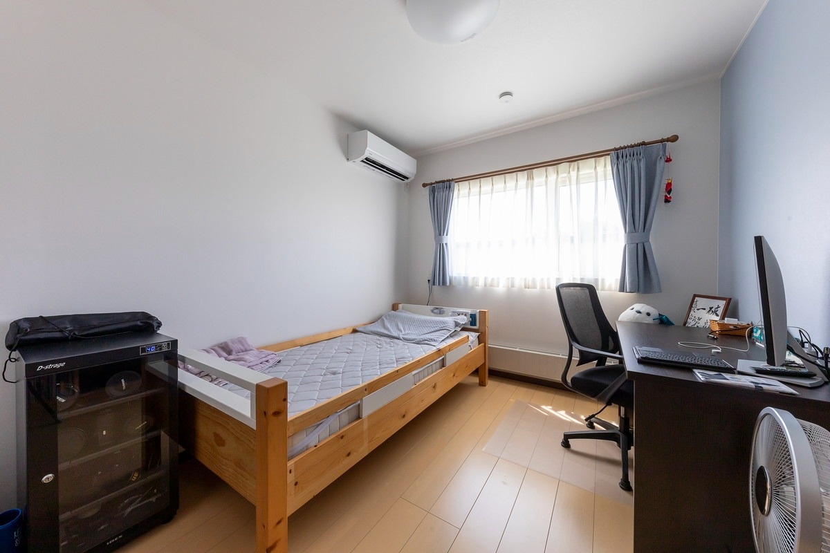こちらはHさんの個室です。ベッド脇にあるのはカメラの保管庫。湿度調整もできる本格仕様です。