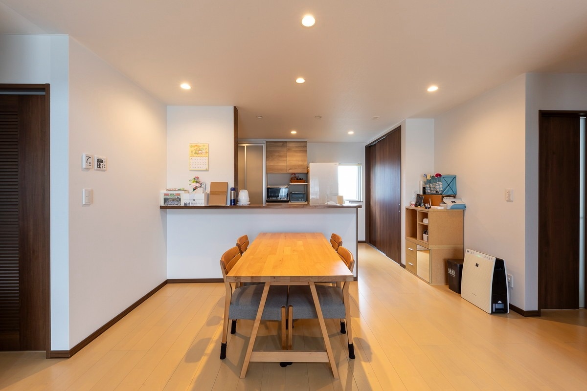 洗面室や浴室に続く動線はダイニングから続いています。