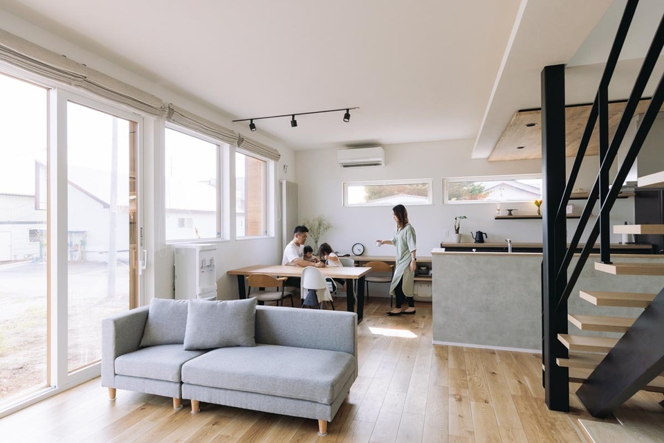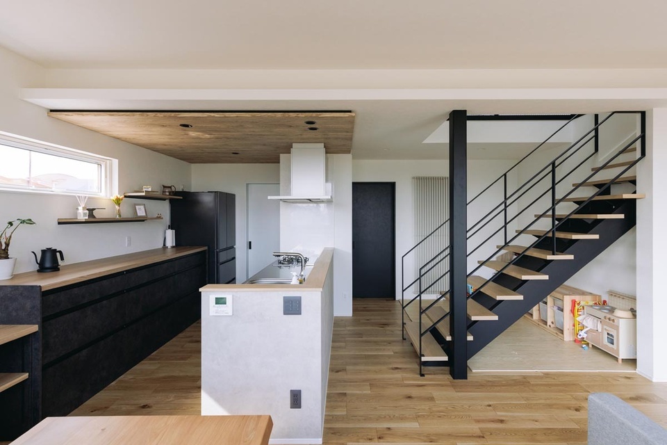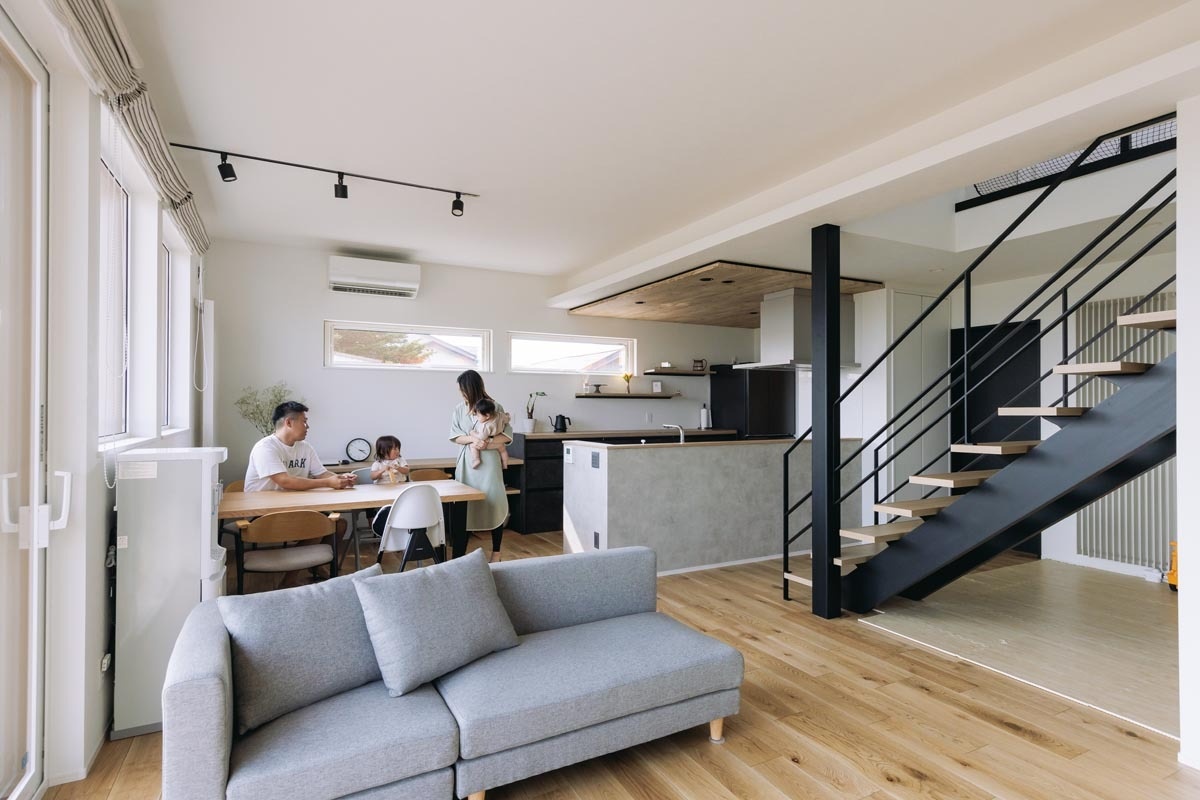 アイアン階段がアクセントの明るいLDK