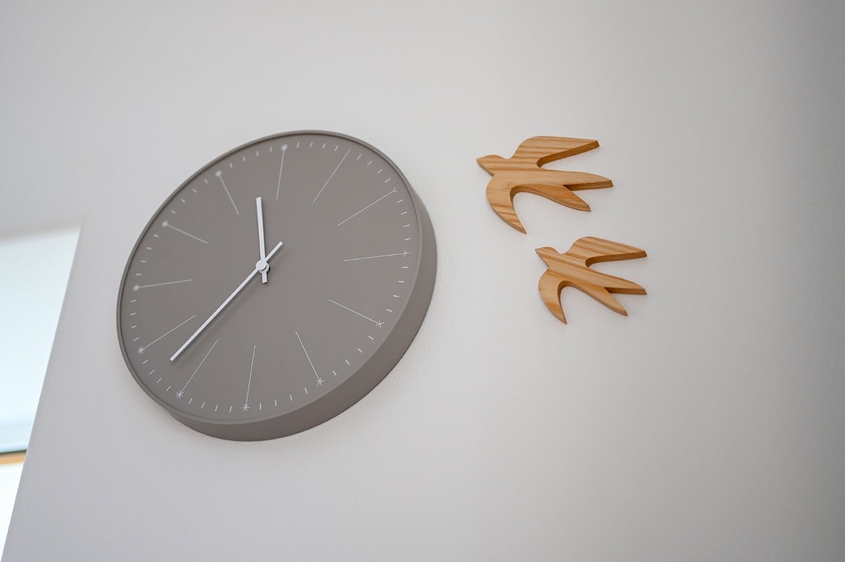 よく見ると、白いクロスは真っ白ではなく、彩度が低くて少しグレイがかった白。いわゆる“くすみカラー”です。カーテンや時計なども“くすみカラー”で揃えました。奥様は「ひとくちに白といっても、色味や彩度によっていろんな白があり、悩んだりもしました」と家づくりを振り返ります。