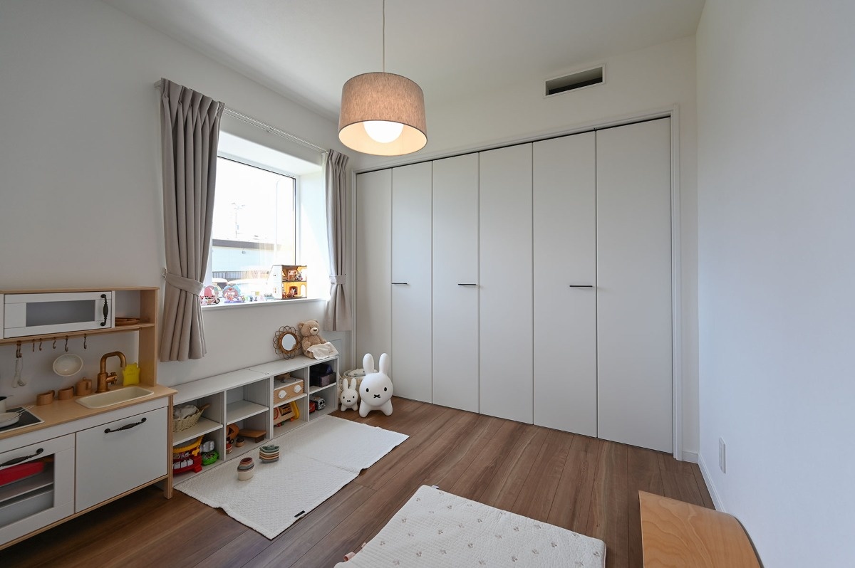 性能面でも光輝建設が推奨する4倍断熱(外壁断熱厚が400mm)と、地熱を利用し熱回収も行うオリジナル換気システム“スーパー澄家”によって、住み心地はとても快適。まだ最初の冬を迎える前ですが、暮らし始めてから何日かあった暑い日も、エアコンを27℃設定で運転すればすぐに過ごしやすい室温になるなど、高い断熱性能の恩恵はすでに実感済み。窓を開ければ風も良く抜けると言います。