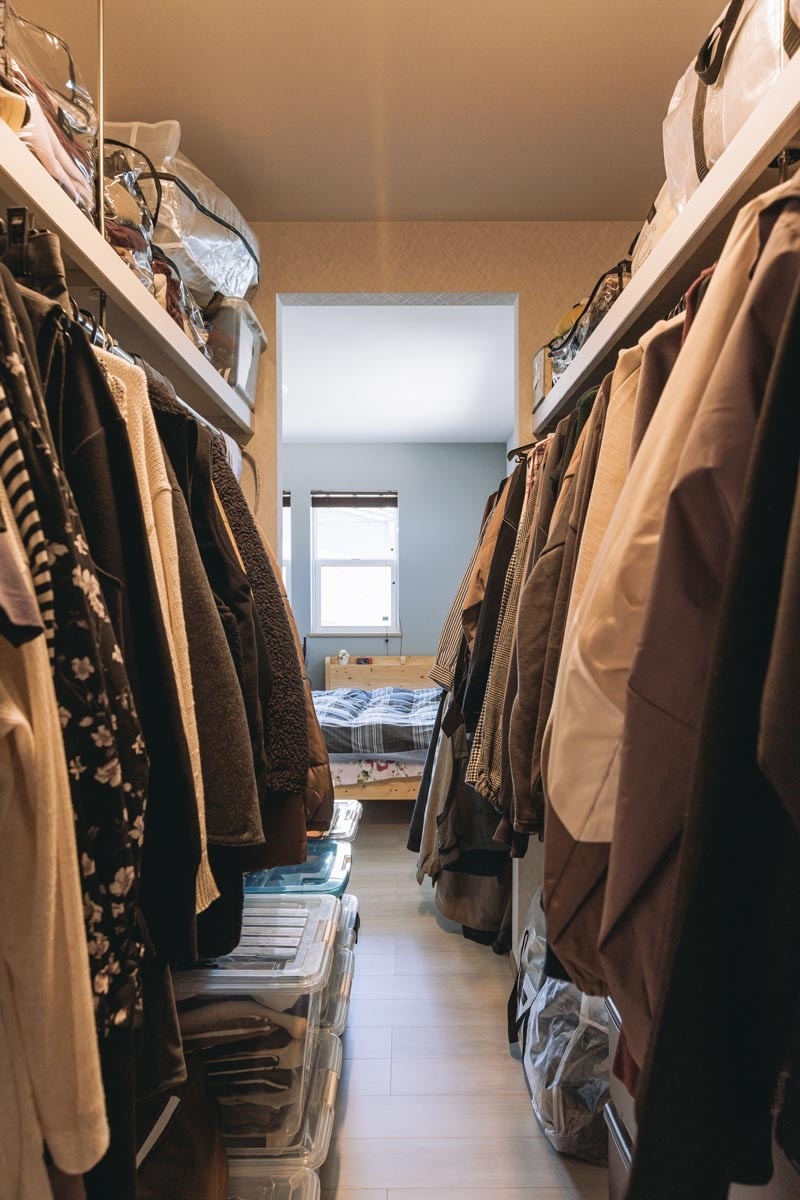 洋服をたくさんお持ちの奥様には大きなクローゼットを用意。LDK・寝室・クローゼットを回遊動線にしたことで、朝の支度もスムーズです。