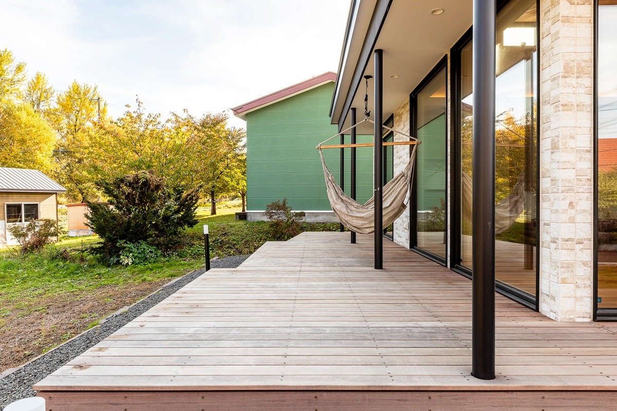 畑がしたいというご主人の希望により、庭の面積を広くしたのも特徴です。家と庭をつなげるウッドデッキも広々と作りました。