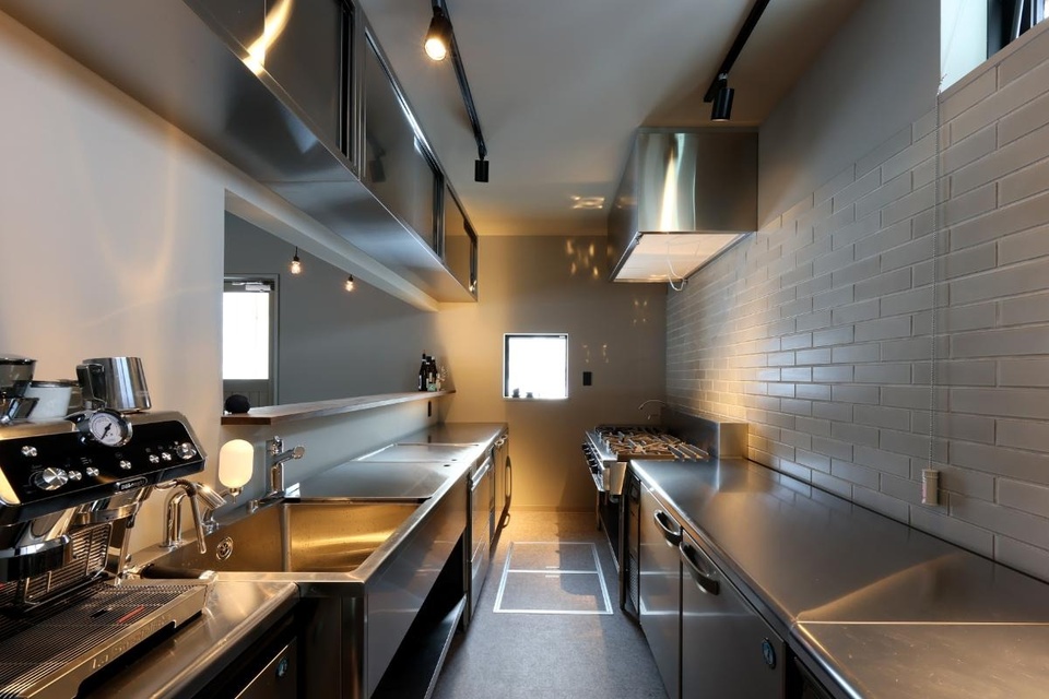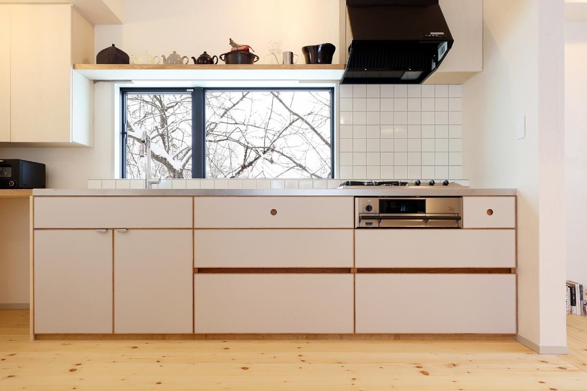 壁付けのキッチンは家具工房enaoの遠藤さんが造作。