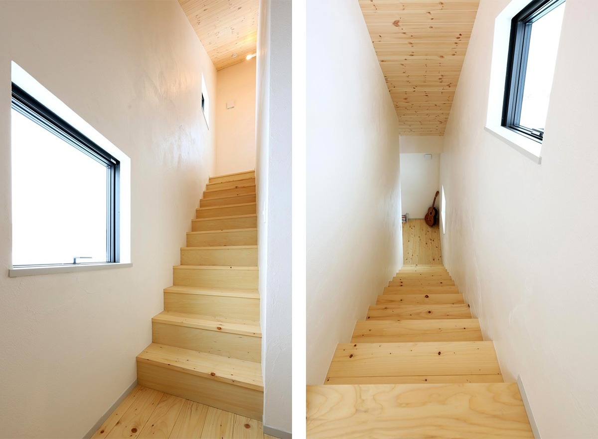 無垢材の階段をのぼり秘密基地のような居住空間へ