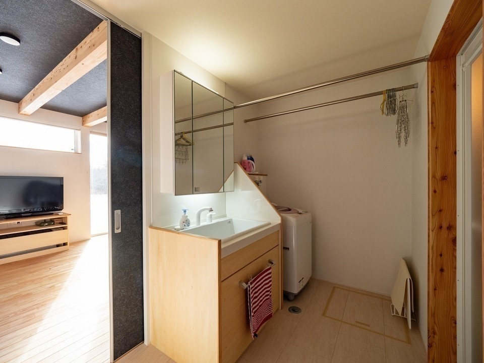 広さは抑えていますが、平屋のため階段スペースが必要なくなり、また玄関周りや水回りのスペースを広めに取っているので広々としています。