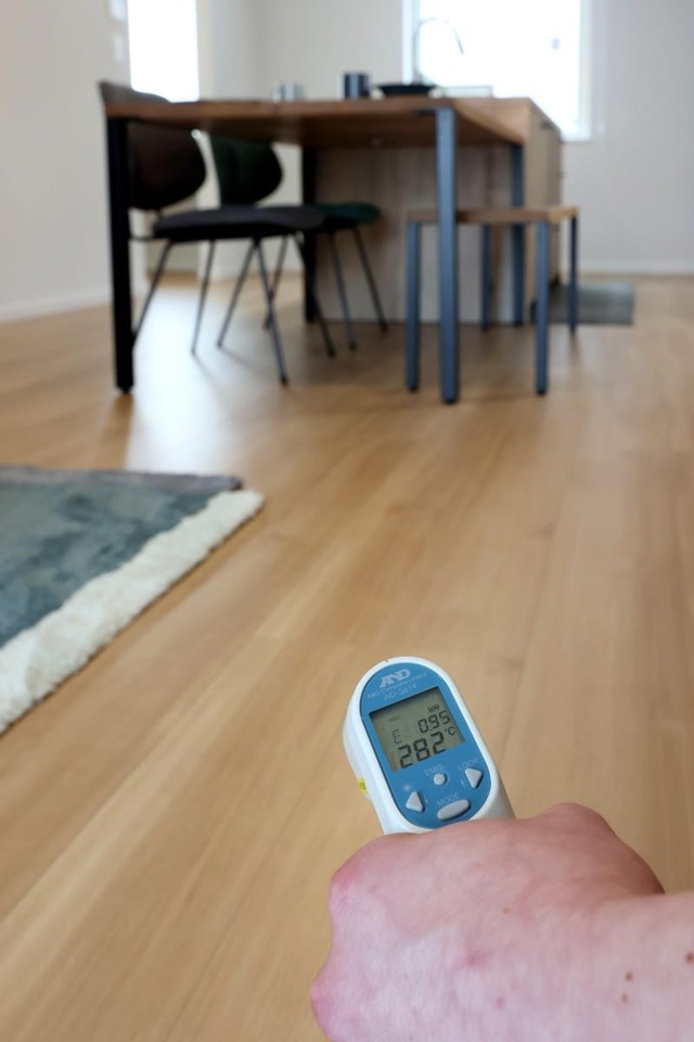 板倉係長 当初は、等級7の断熱性能なので暖房設備を極力減らそうと、「エアコン1台」にする案もありました。ですが、協栄ハウスは床暖房の施工に習熟しており、性能・価格ともに他の暖房設備より優れた暖かさと設置コストでお客様に提案できるということで、今回も床暖房を標準としてご提案させていただいております。
