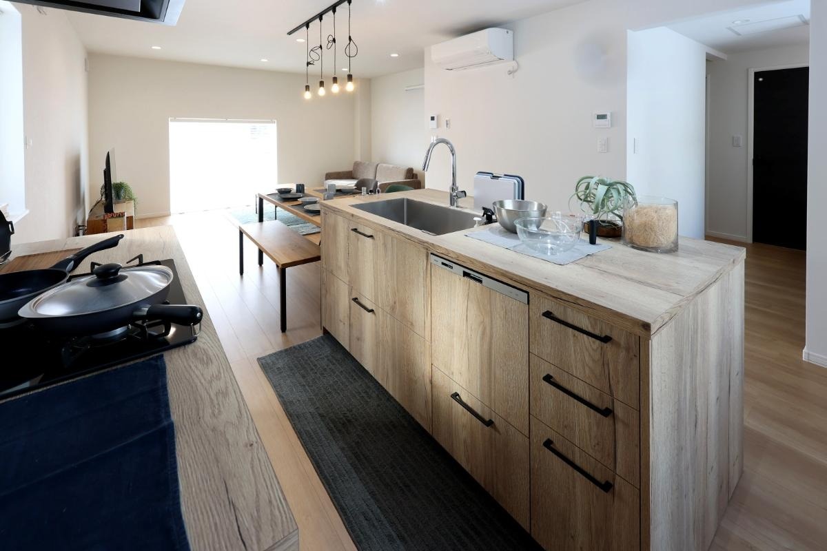 名称の「DAN」には、室内の暖かさの「暖(だん)」のほか、家族団欒の「団(だん)」の意味が込められています。キッチンとリビング・ダイニングが一体になっていて、料理中でも家族とのコミュニケーションが取りやすい間取りです。