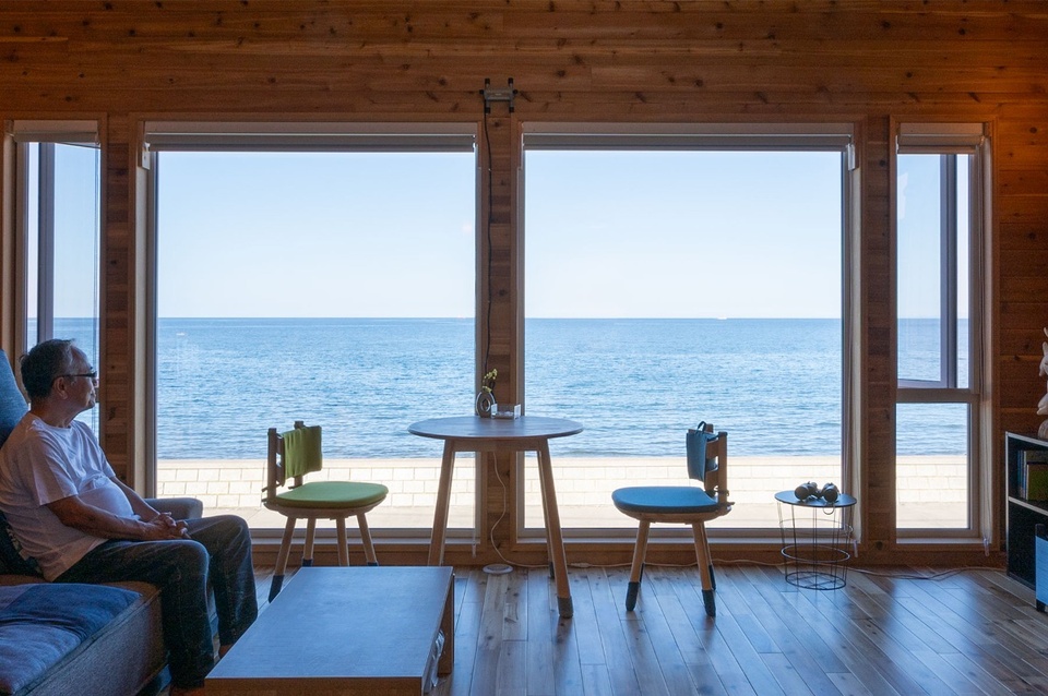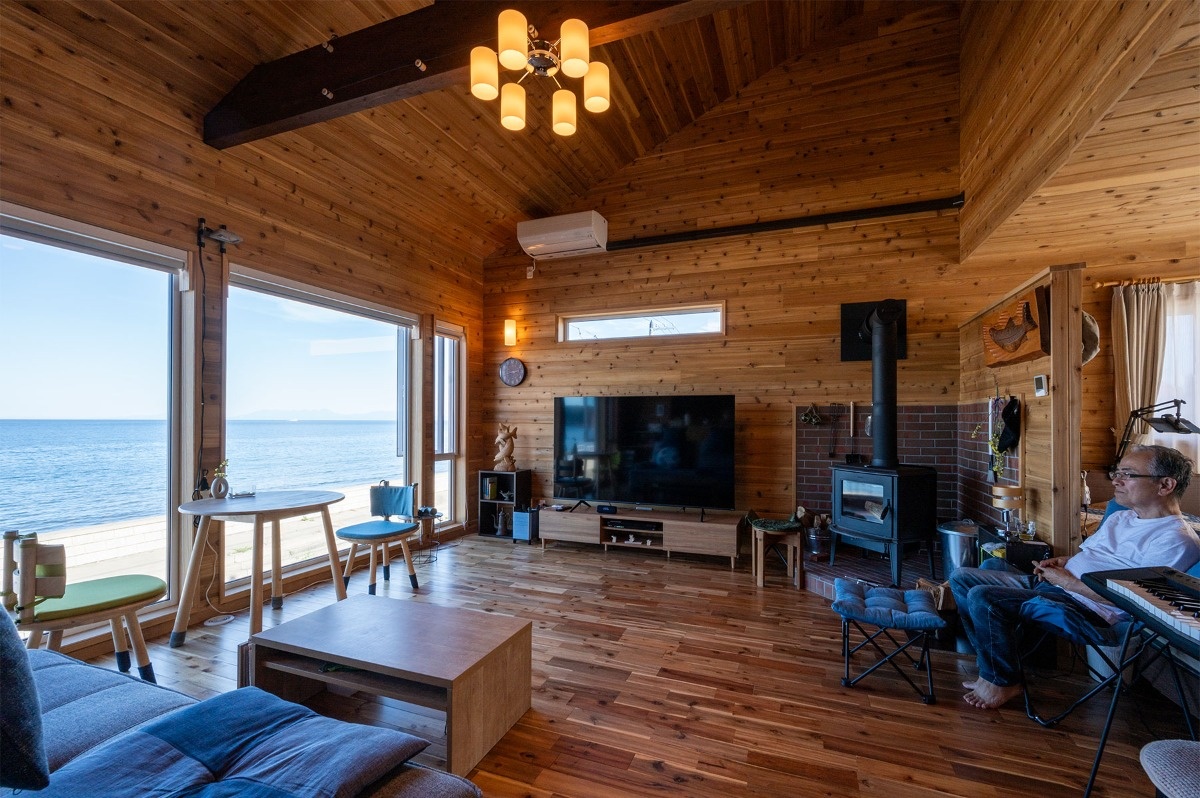 生まれ育った街で、オホーツクの海を眺めながら暮らしたい―。そんな想いで現在新潟に居を構える鈴木さんが、オホーツク海のすぐ側にセカンドハウスを完成させたのが2022年の秋。今では毎月のように訪れ、木の温もりに満ちた部屋から窓の外に広がる大海原の風景を楽しんでいます。