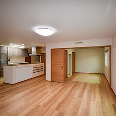 また、家の前の道路は散歩する人や車も多く通るので、プライバシーの確保に配慮しブロンズガラスを採用。室内からの眺望を損なわずに外からの視線を遮ることで、絶景を誰にも気兼ねせずに楽しめる空間となりました。ちなみにこれだけ窓が大きいと冬の寒さや夏の暑さが気になりそうですが、そこは窓の性能に加えて外壁の断熱性能の高さもあり、1年を通じ室内を快適に保ってくれます。