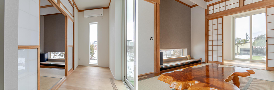 和室は、雪見障子や床柱などはそのまま活用。地窓を加えることで明るい空間になりました。