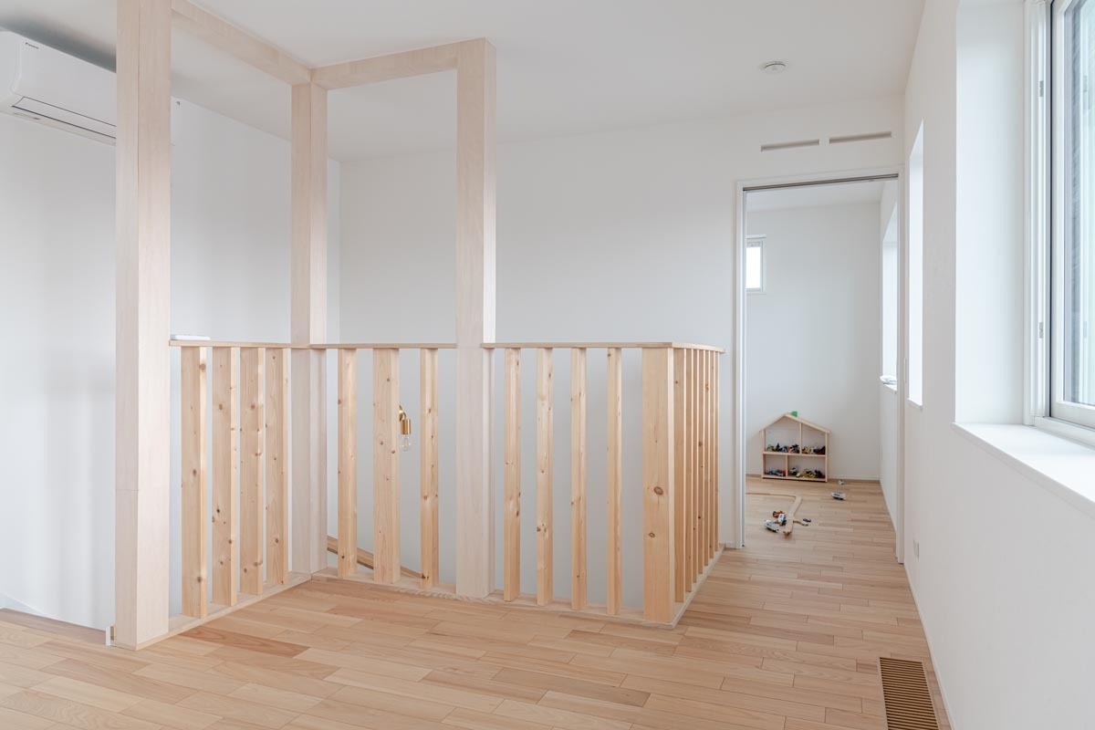 奥さまは仕事はほとんど自宅で行うというテレワーカー。完全な個室ではなくお子さんの様子を見守れるように、リビングの一角にデスクを置き、木のパーテーションで緩やかに仕切りました。