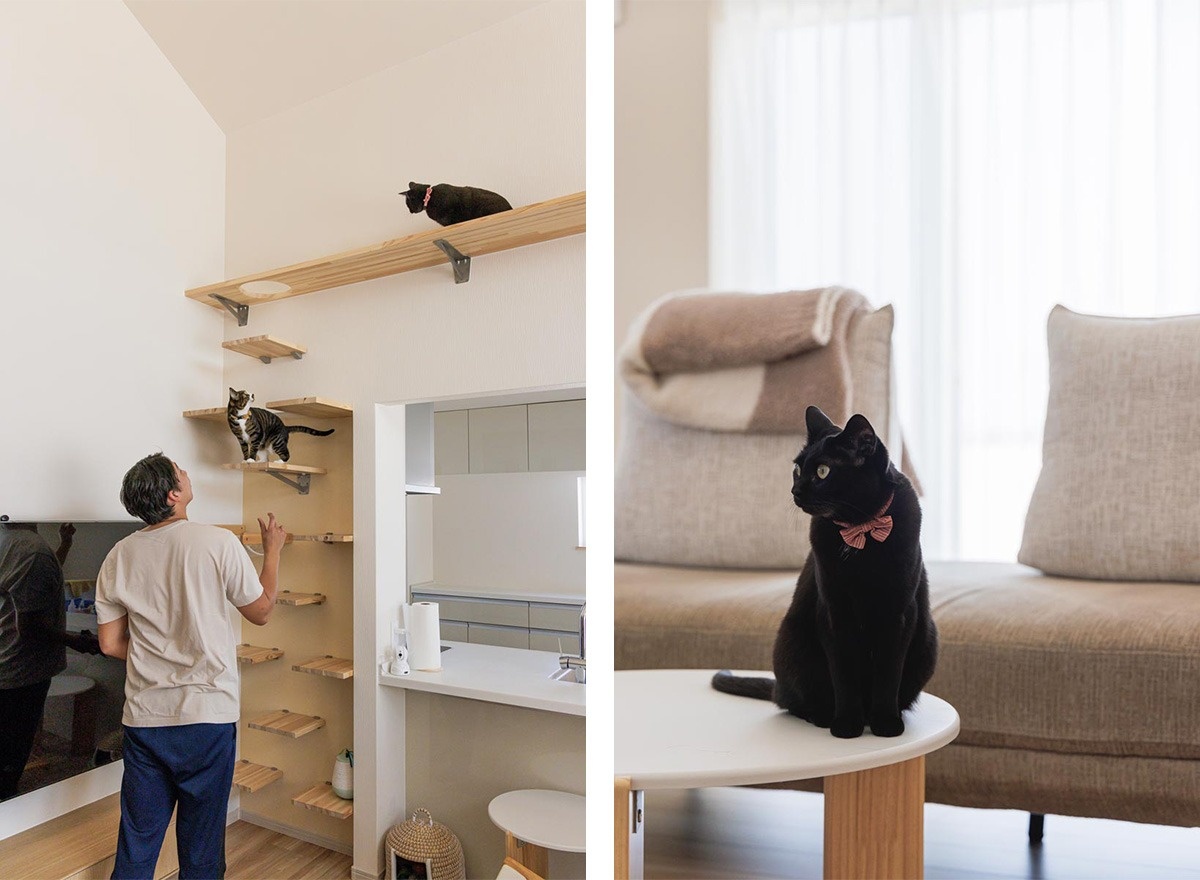 「猫たちはすぐ慣れて、キャットウォークも毎日駆け回っています。床暖房も気に入っていますね。家族全員がリビングで一緒に心地よく過ごせるようにと思っていたので、嬉しいです」