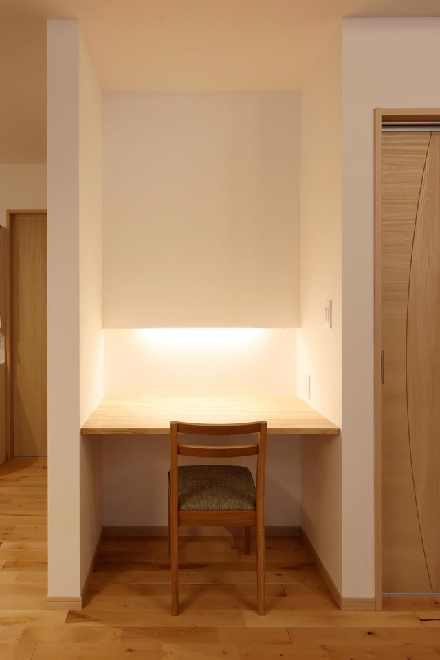 リビングの一角にはカウンターテーブルを備えたテレワークスペースも用意されています。