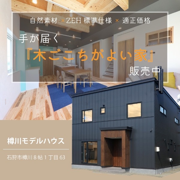 石狩市樽川で現在公開・販売中のモデルハウス「木ごこちがよい家」を訪ね、橋本建設の家づくりの魅力に迫ります。