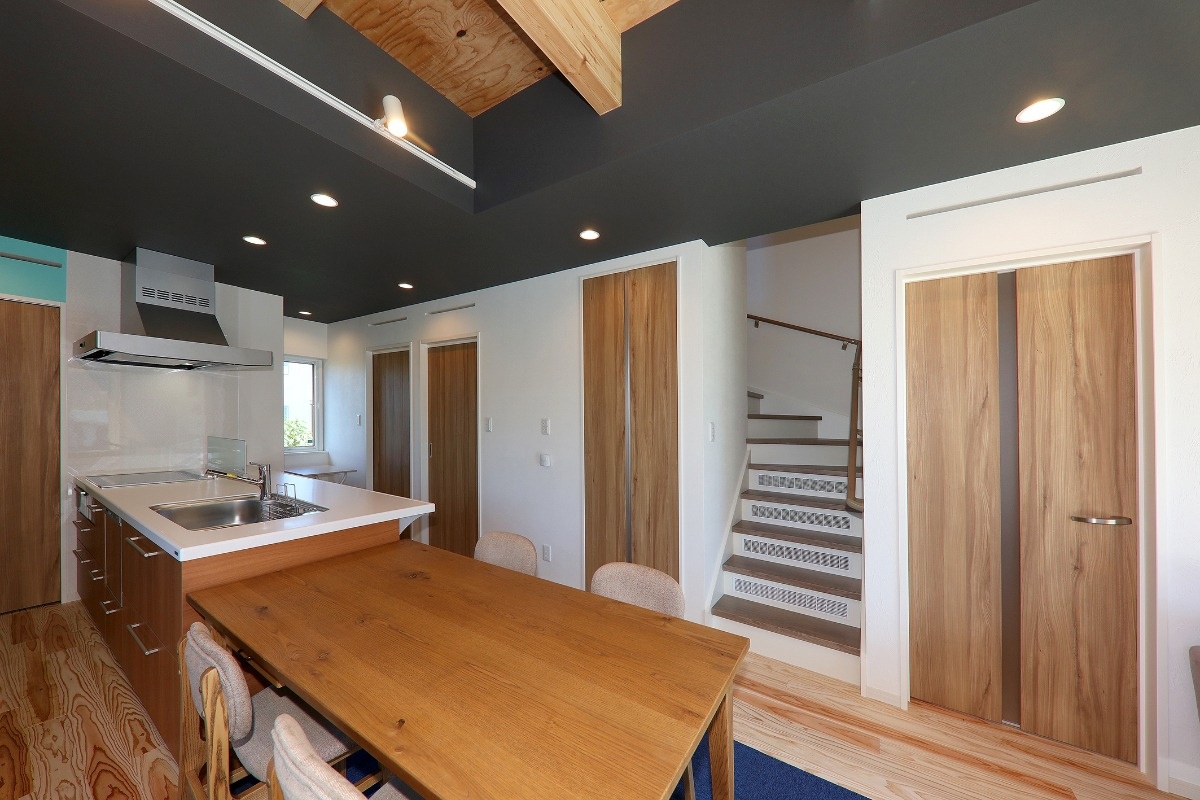 梁を現しにした高天井・開放的なLDK