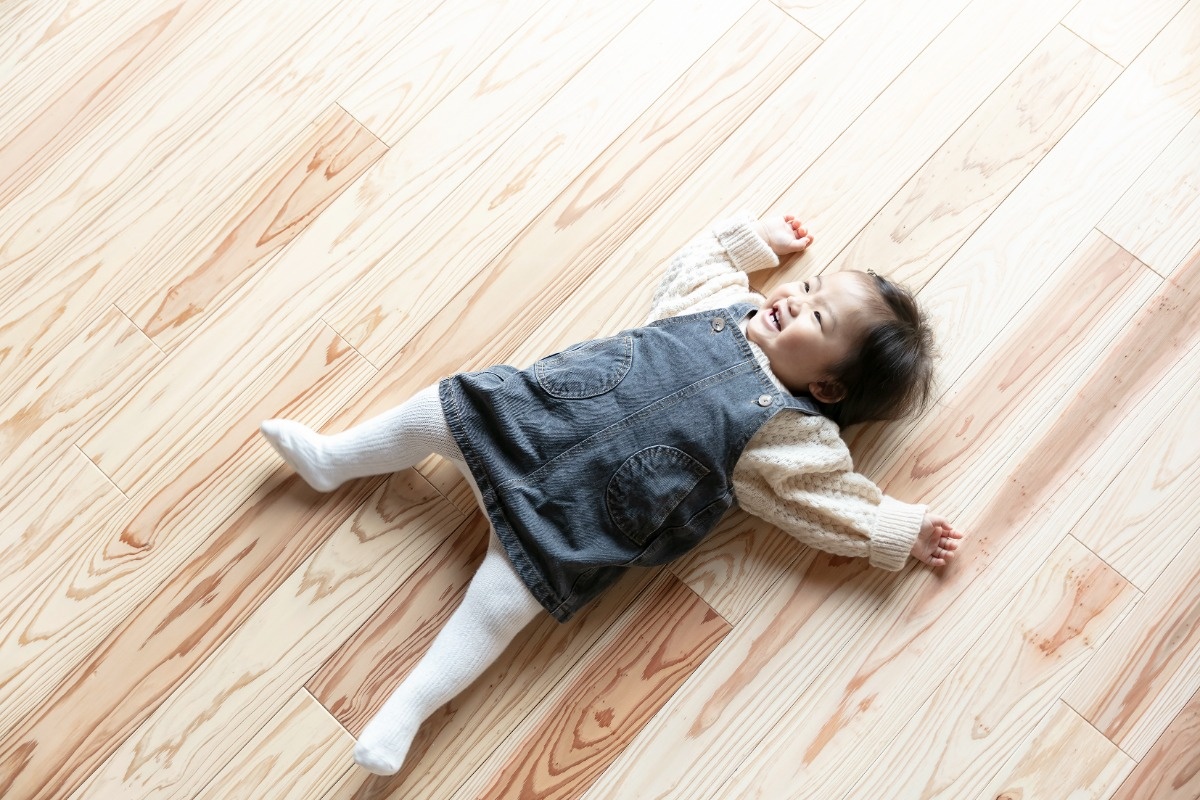 無垢床の自然な凹凸が心地よく、住むほどに味わいが出てくる素材です。