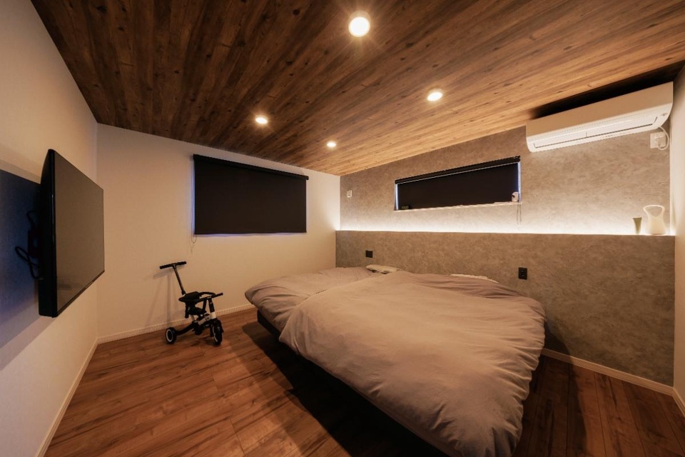 寝室には間接照明を入れ、ホテルのような落ち着いた雰囲気に仕上げました。