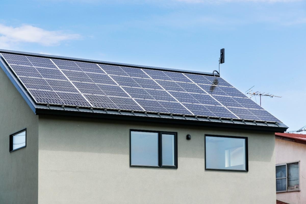 南側の屋根にはソーラーパネルを20枚設置しました。
