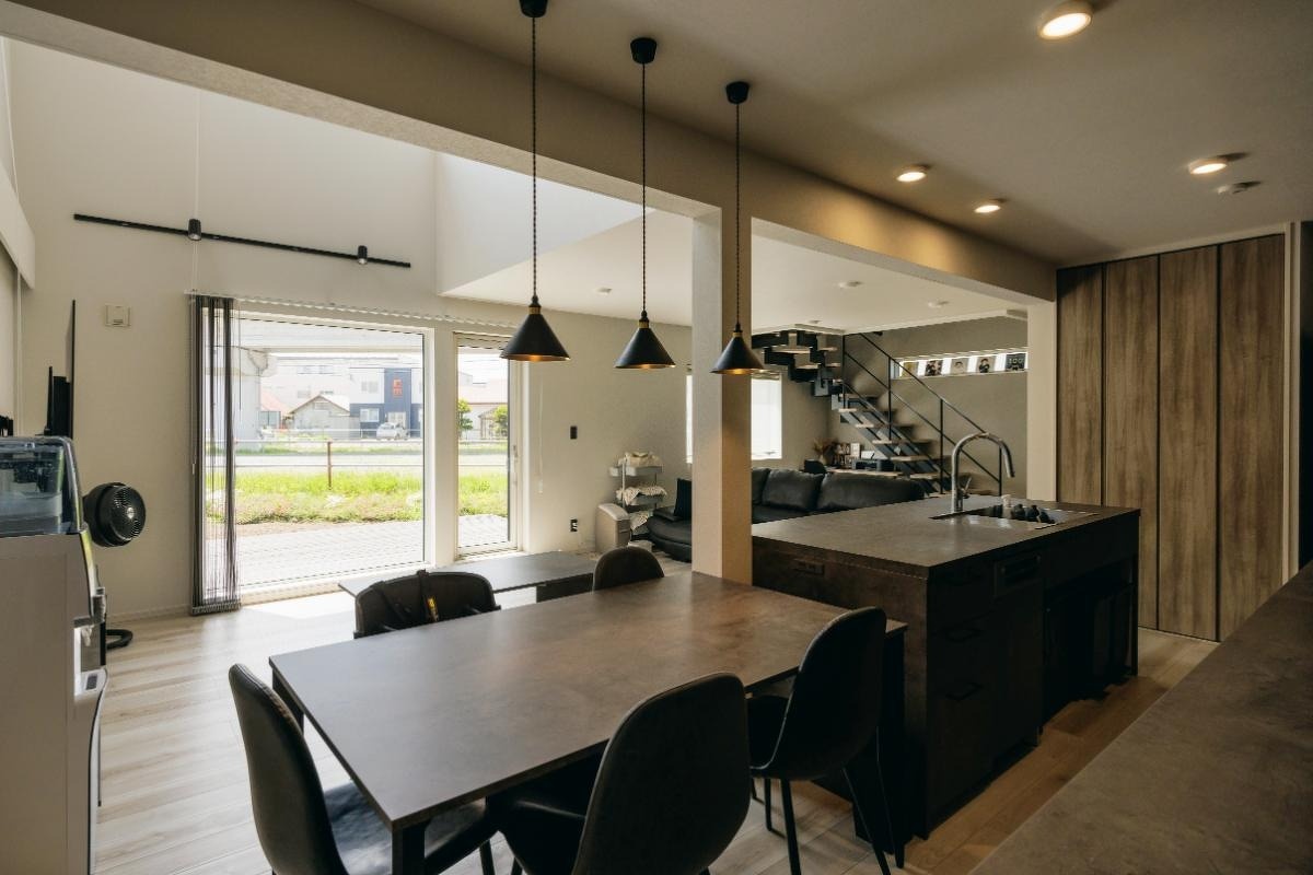LDKは一部吹き抜けのゆったりとした造りです。扉は空間を広く感じさせるハイドアを選びました。