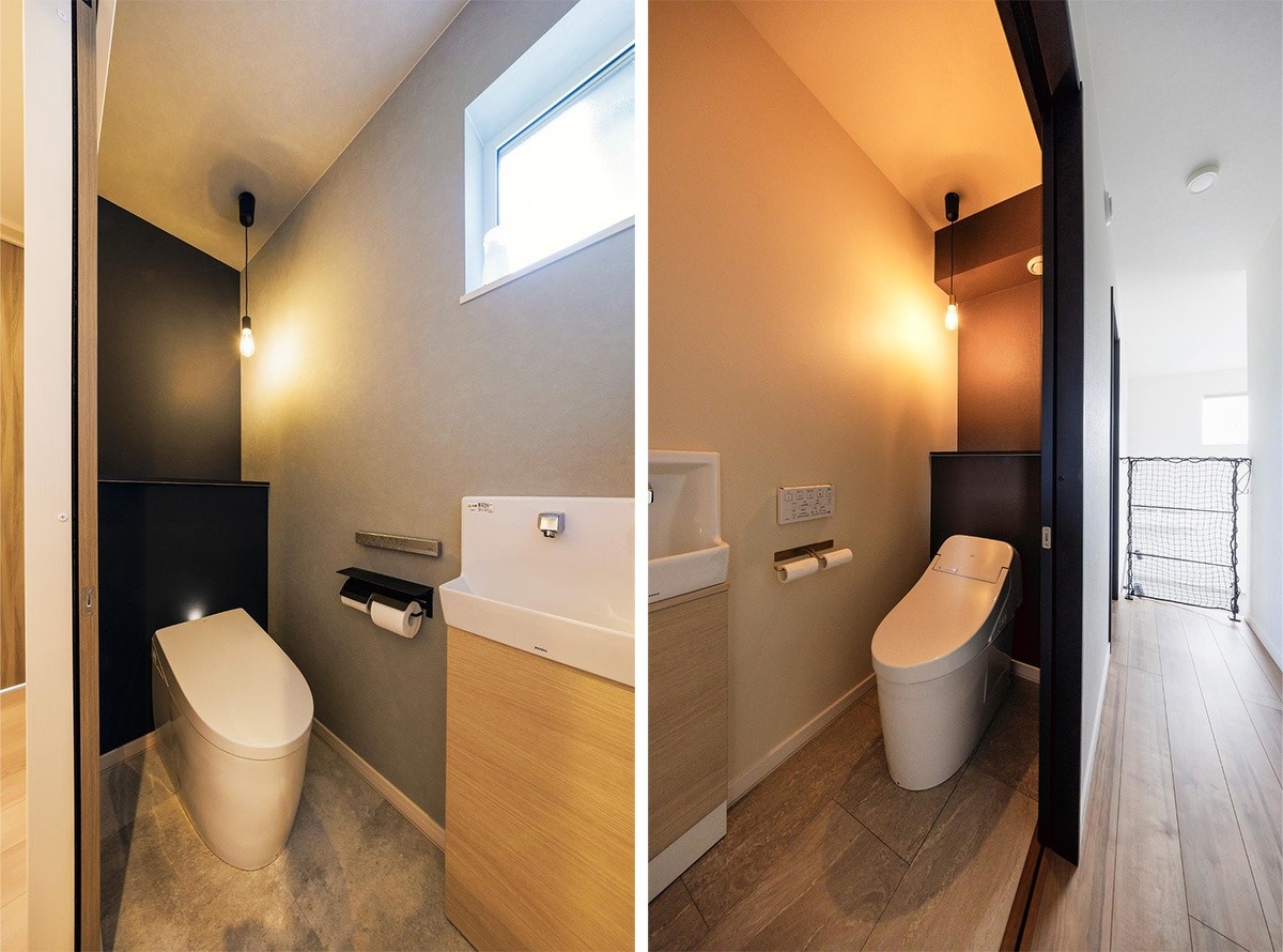 1階、2階トイレには同じ照明を入れて。照明はインターネットで選んだものです。