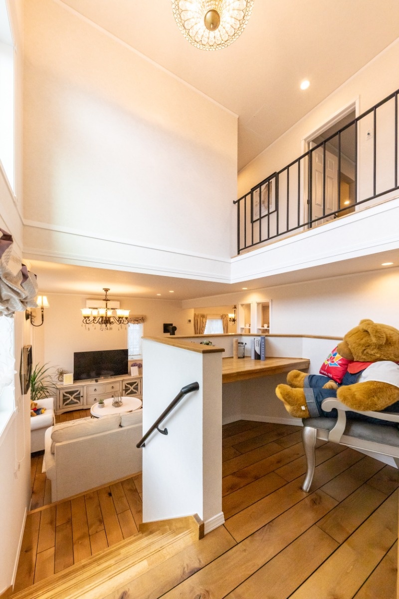 家族の気配を感じながら過ごせるスキップフロアの書斎。