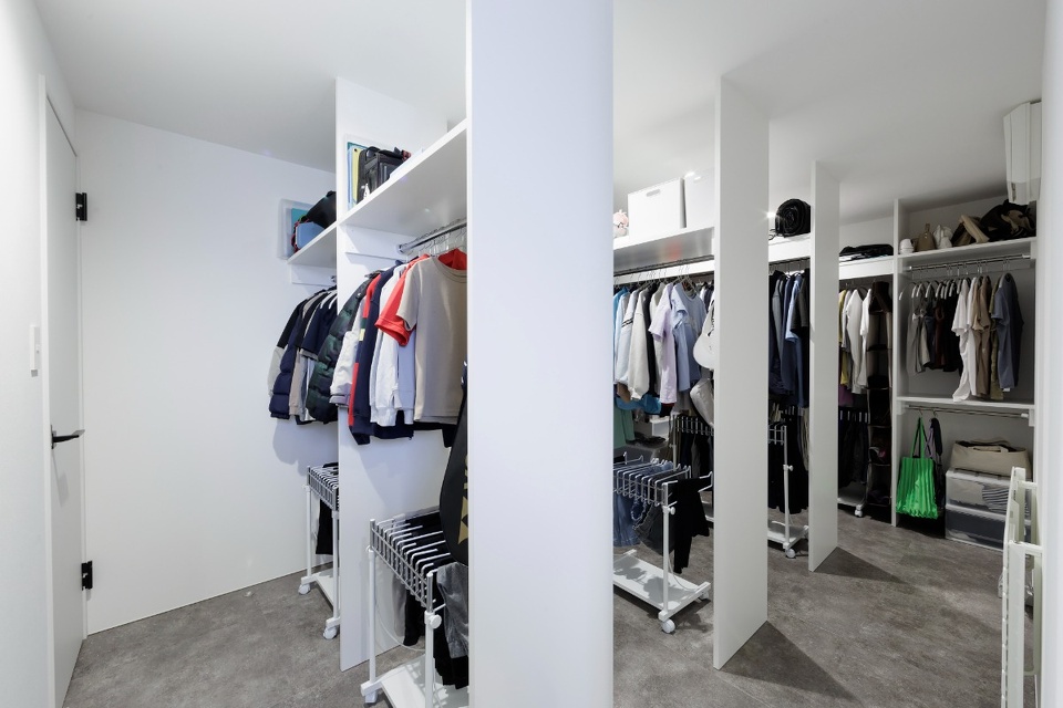 「ファミリークローゼットは居室の中で一番広く空間をとり、ランドリースペースとホールに抜けられる配置で回遊式の動線も実現しました」と柴嵜さん。