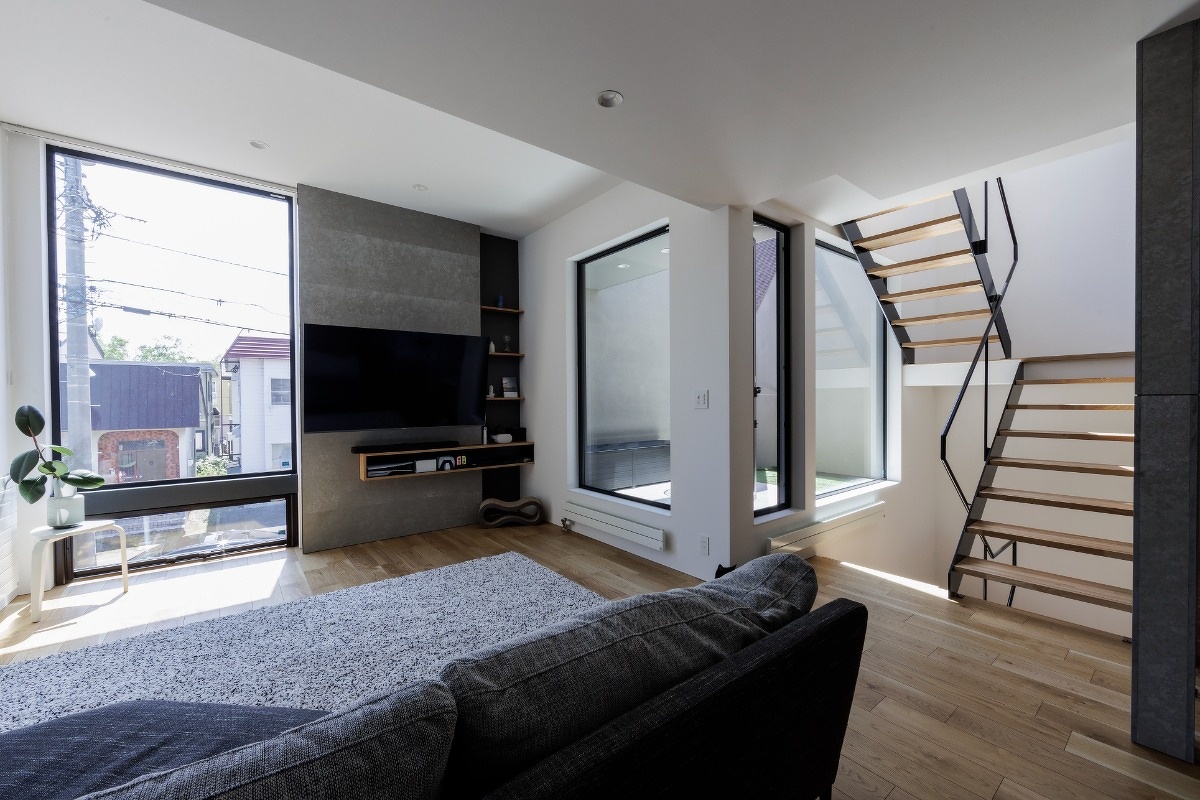 シンプルを極めた心地よさ・美術館のような街中の3階建て住宅/札幌市