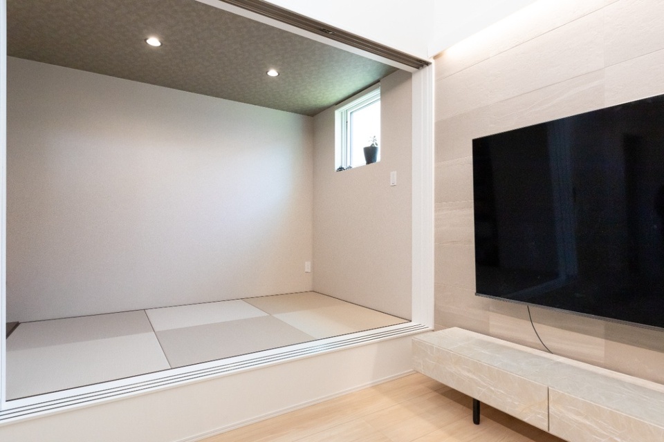 リビング横には将来的に仏壇を置くための和室をつくりました。小上がりになっているので腰掛けてテレビを見たり、子供たちが寝転がって遊んだりと重宝しているそう。