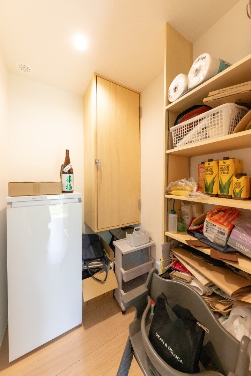 キッチンのすぐ後ろには大容量のパントリーがあり、冷凍庫のほか、保冷庫も備えています。