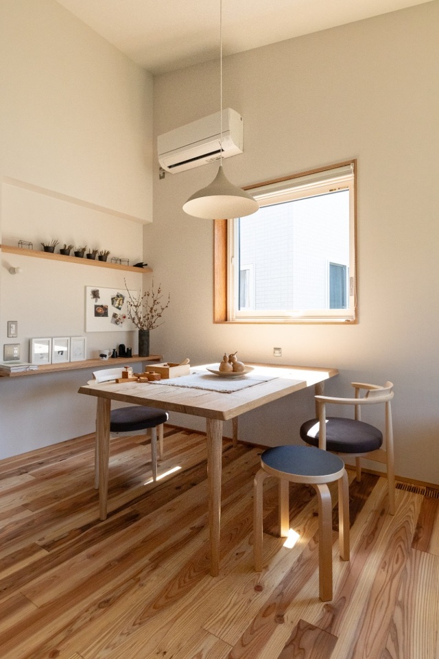 屋久島地杉の床に、澪工房のダイニングセットがよく似合います。