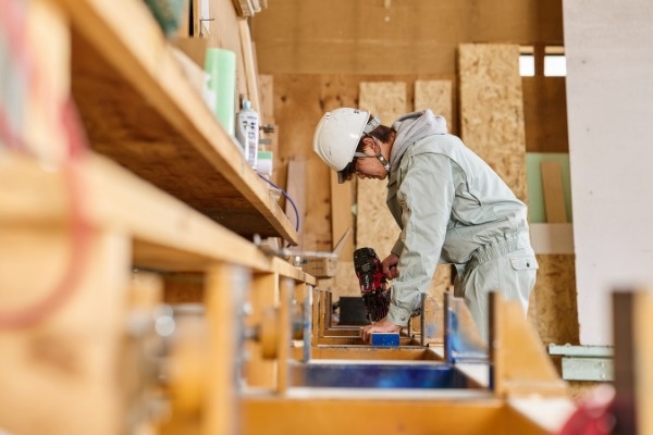 工法は140mmの断熱層が確保できる2×6工法を採用。自社のプレカット工場で加工した精度の高い製材で家の骨組みを建てており、自社工場・自社大工による一貫した自社体制が自慢です。施工体制を整えることで、高品質な住まいが実現しています。
