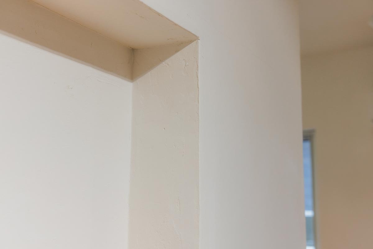 壁には調湿・抗菌効果のある漆喰を使っています。メンテナンスの必要が少ない素材を使うのも家づくりのポイントです。