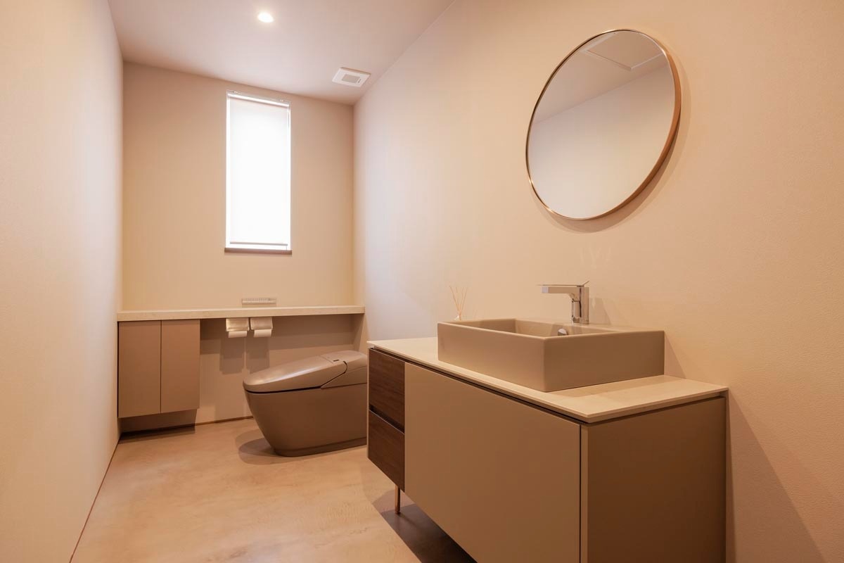 「洗面ボウルはフラットで薄く、面積の広いものが良かったんです。色々探してもらってこれにたどり着きました」という洗面ボウルはKALDEWEI社、水栓はDELTA社の輸入品。選び抜いたものだけで造った品のある空間になりました。