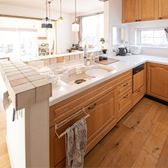キッチンメーカーのショールームも見学した上で、デザインとコストの両面で要望を叶えるために、安達設計部長に要望を詳しく伝えオーダーキッチンを実現しました。洗浄力を重視しボッシュの食洗機も採用。