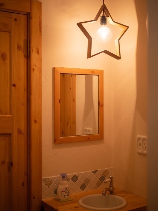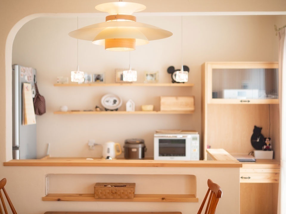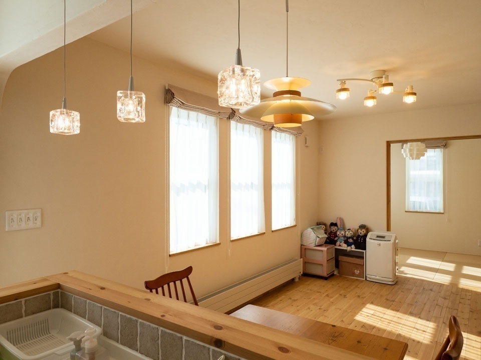 奥さまがインターネットで探したこだわりの照明やインテリアが、可愛らしさをプラス。ご家族が集まるお気に入りの空間です。