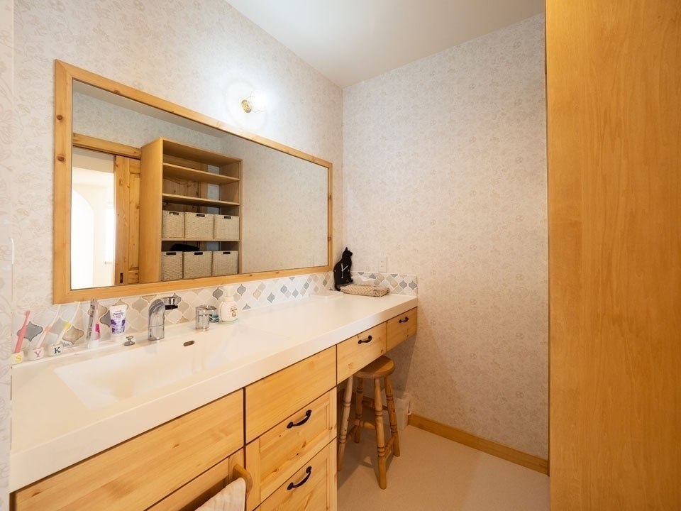 奥さま:朝日社長が出してくれたプランには、階段の踊り場を利用してアイロンがけやミシンがけなどに使える作業スペースが入っていて、『欲しいな』と思っていたのでびっくりしました。家事動線も気にしてくれて、水回りがつながっているのは動きやすくてとても便利。収納スペースも広くてばっちりです。