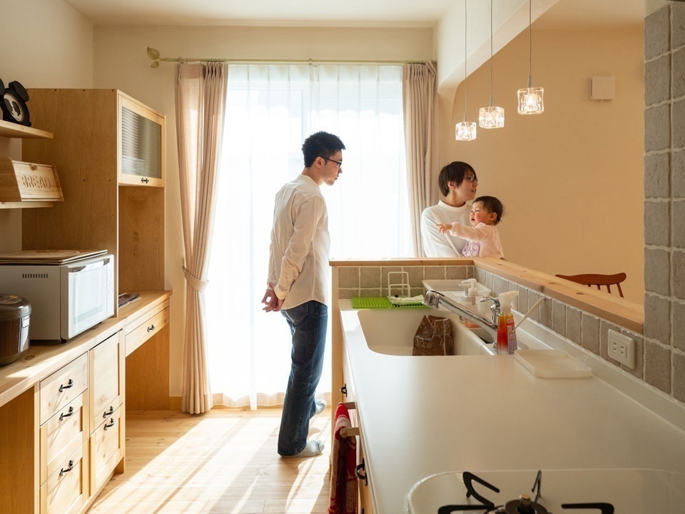朝日社長:あとはいろいろな事例から学んで、女性に優しい回遊式のキッチンをご提案させていただきました。大きな作業台の造作や、キッチンからお子さんの様子が見える和室の位置も、お客さまのご希望とマッチしていて嬉しかったです。