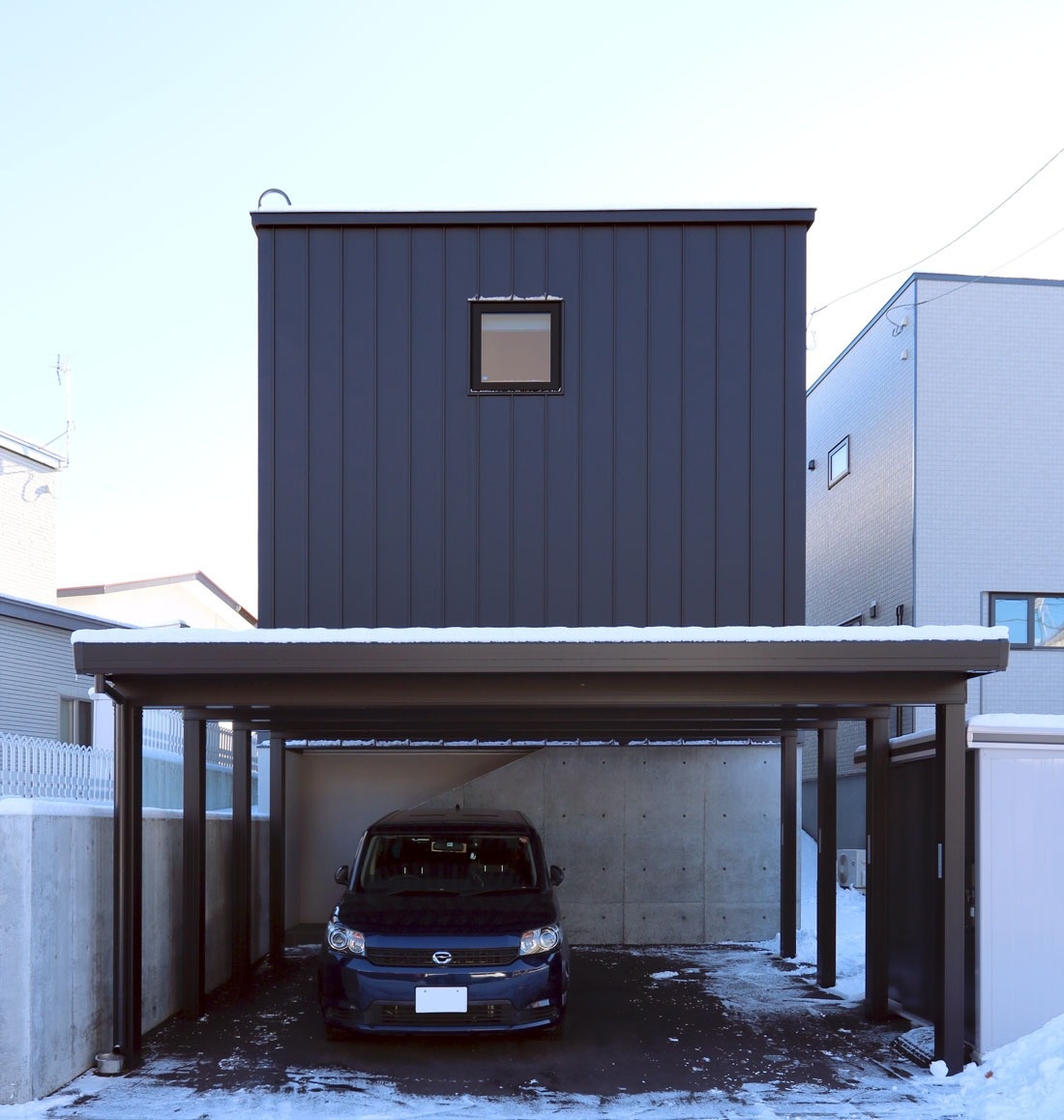 まず間口に玄関ドアが見当たりません。カーポートの横、階段を上って玄関ドアまで進むアプローチです。