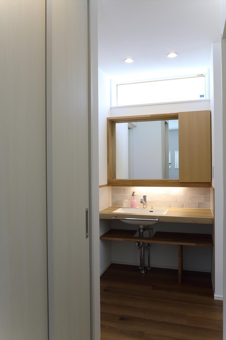 ありきたりな既製品の洗面台は使わず、すっきりシンプルなスタイルになりました。