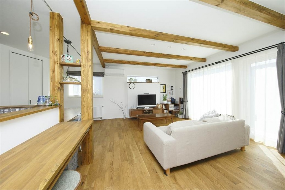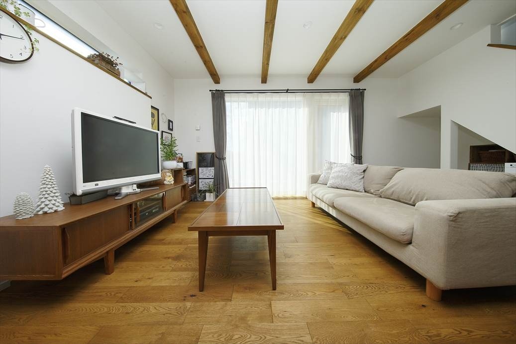 大きな掃き出し窓のあるリビングは、太陽の光を取り込んで明るさたっぷり。