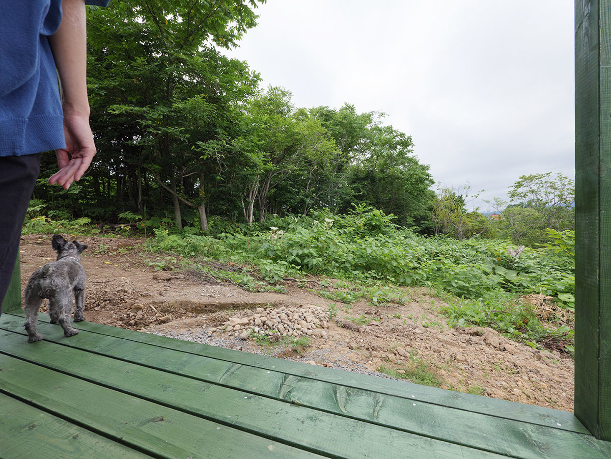 家屋と同じ高さの林が、西側の窓に迫ります。葉脈まで見えそうなほどの至近距離。
