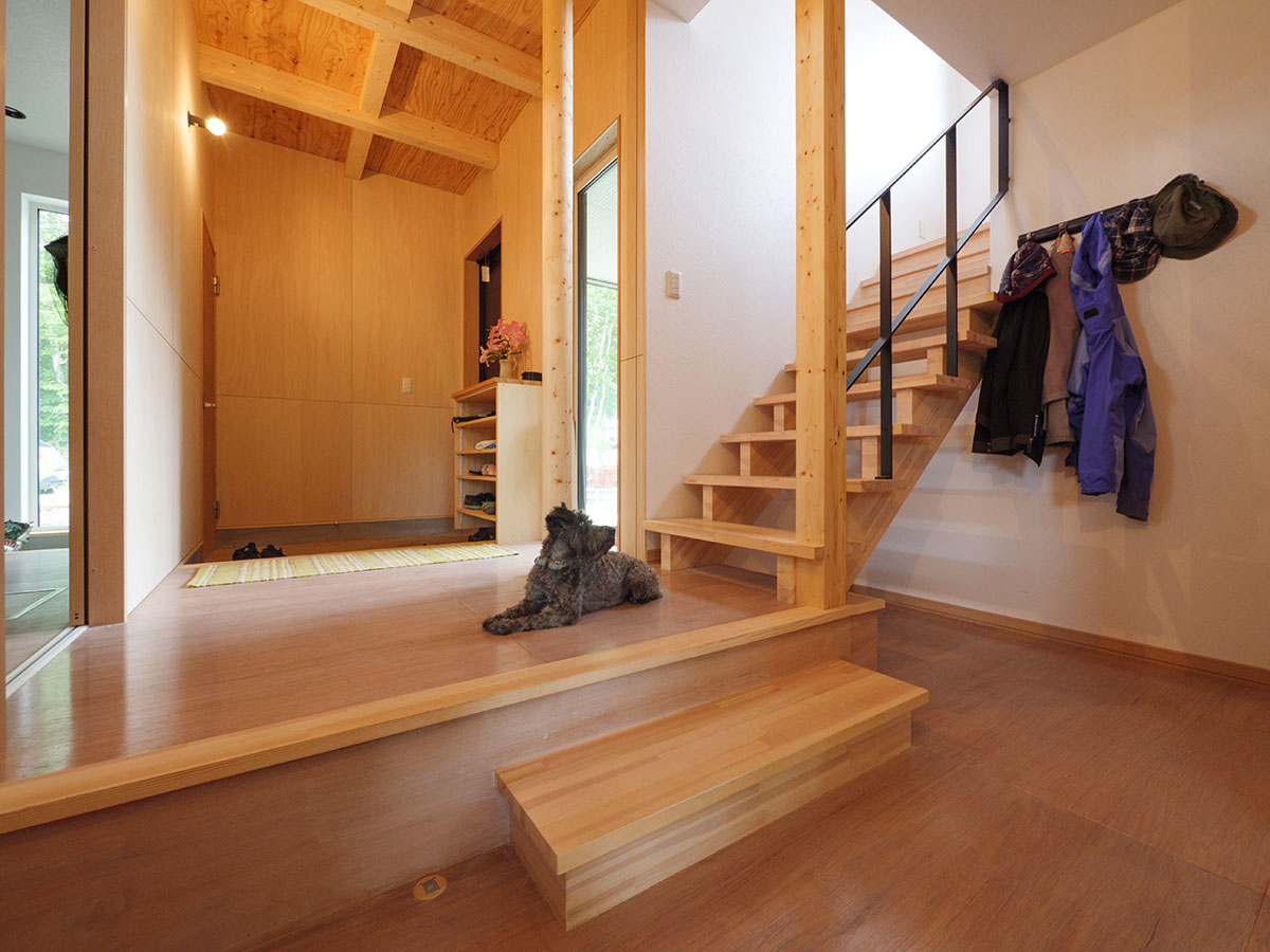 ご主人のこだわりは天井を高くすること。三角屋根の形をそのまま生かし、野地板の現し天井にしたいと考えて、いくつか希望に合う住宅会社を探しました。その中でもインターネットで見つけた晃和住宅が建てる家を強く気に入って、ちょうどその頃真狩で進んでいた建築現場(札幌良い住宅での取材記事はコチラ)を見学。完成した家を見て「理想の家を建ててくれる会社だ」と感じたそうです。