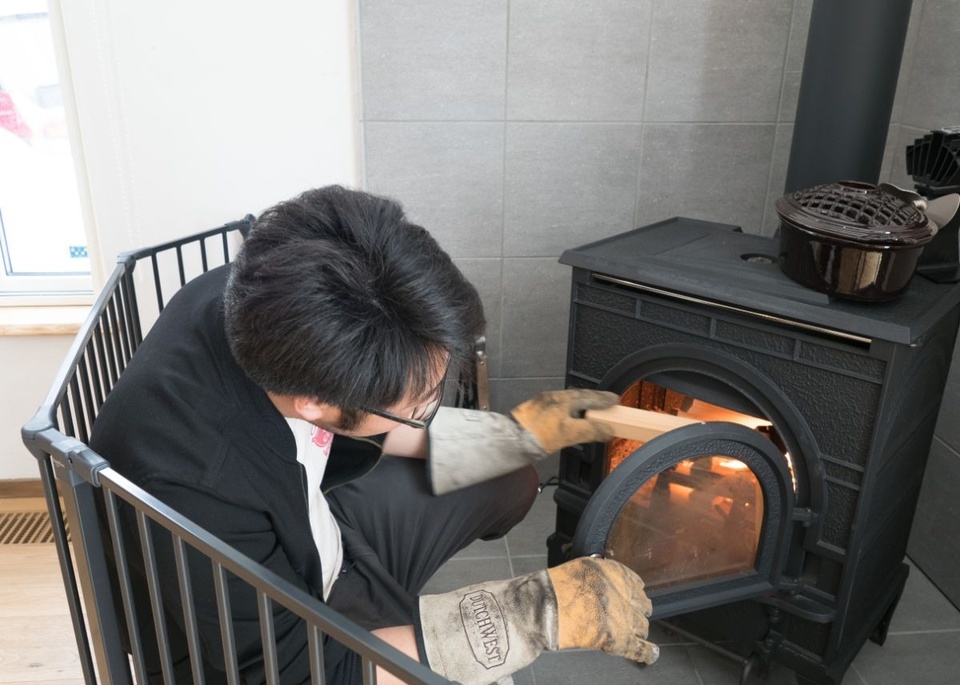 ご主人「冬はほぼ毎日炊きました。最初は薪ストーブの炊き方に慣れなくて、加藤さんに電話してコツを教わったり。火を焚いて、パチパチという音を聞きながらのんびり眺めていると癒されます」