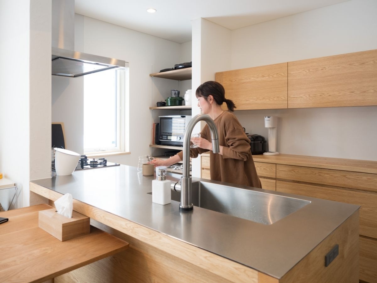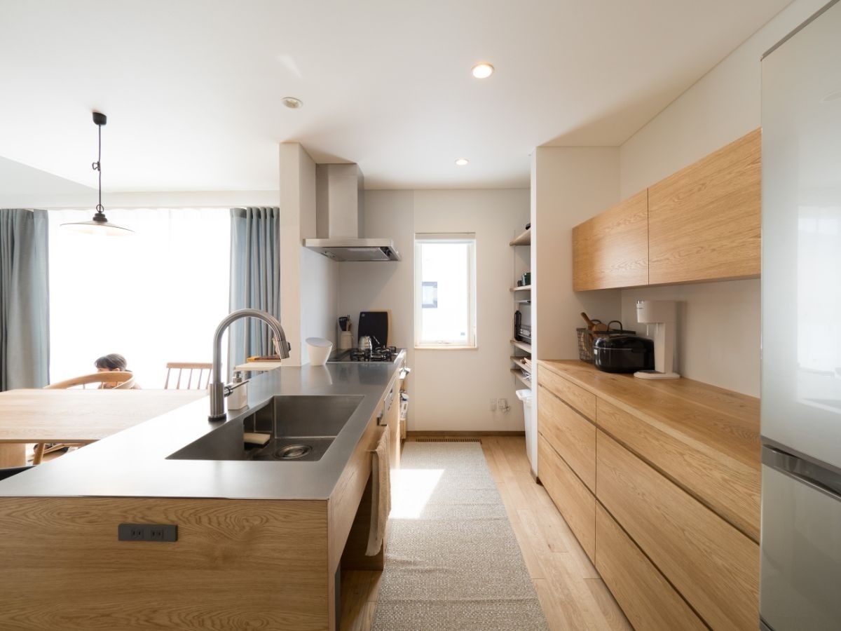 オークの質感が嬉しいキッチン。