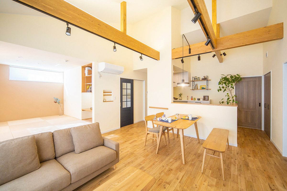 そんな折、職場の同僚がリビングワークで新築したお住まいを見学する機会があり、夫婦そろって一目惚れ。天井の梁を表しにした伸びやかな住空間や、1台のエアコンだけで家中が暖まる省エネ構造が大変気に入ったそうです。