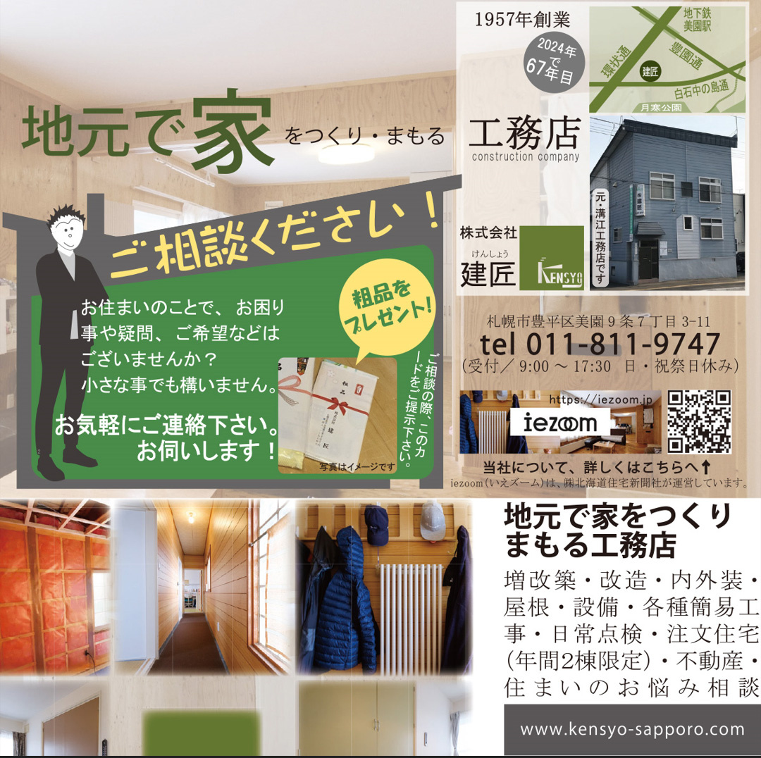 札幌市豊平区で60年以上続く地域工務店・株式会社建匠は「住まいのお困り電話相談窓口」を開設しました。