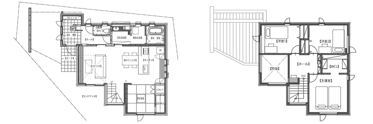 ゆとりある空間を、限られた変形敷地をうまく使ってプランニングしています。